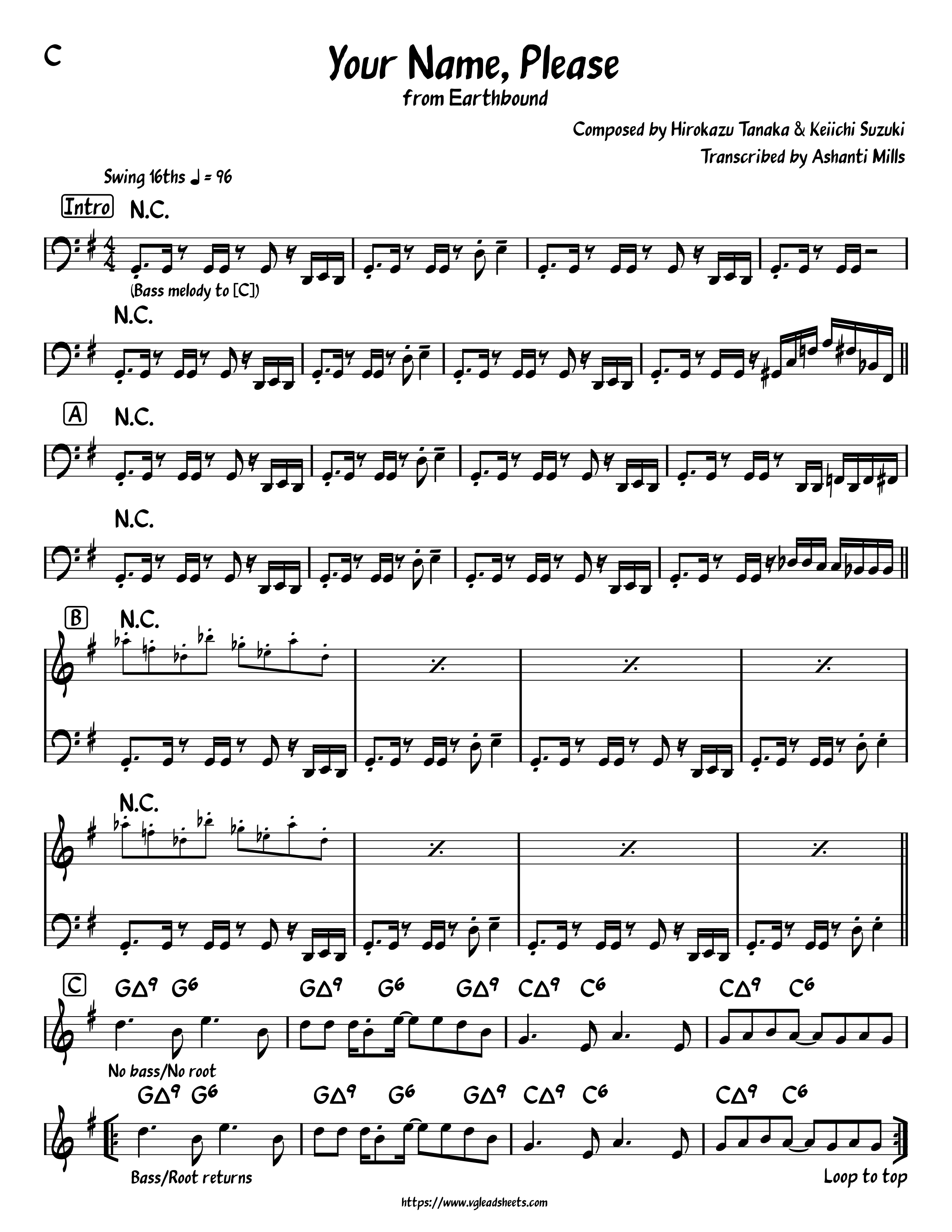 Earthbound Your Name Please Vgleadsheets Com Lead Sheets For Video Game Music