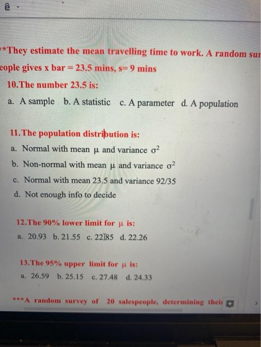 Solved E They Estimate The Mean Travelling Time To Work Chegg Com