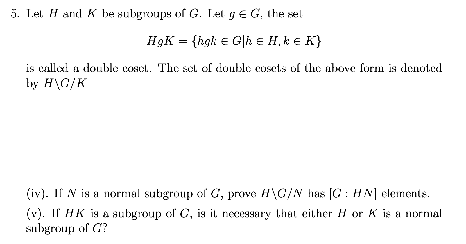 Solved 5 Let H And K Be Subgroups Of G Let G Eg The Se Chegg Com