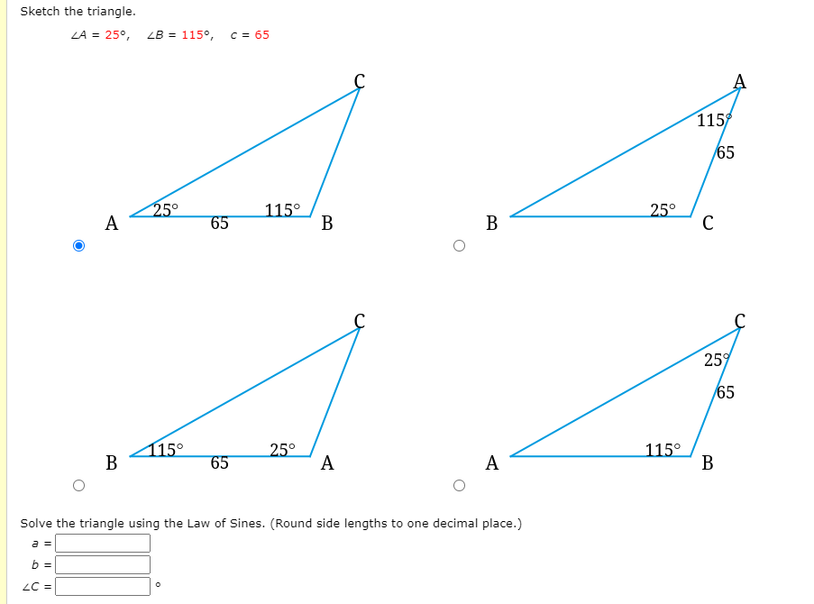 Solved Sketch The Triangle A 25 B 115 C 65 S Chegg Com
