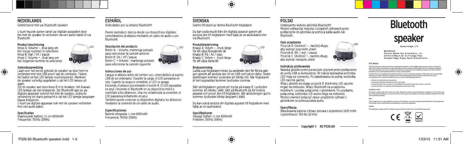 Xindao Xindao Bluetooth Speaker User Manual 15 P326 60 Userman