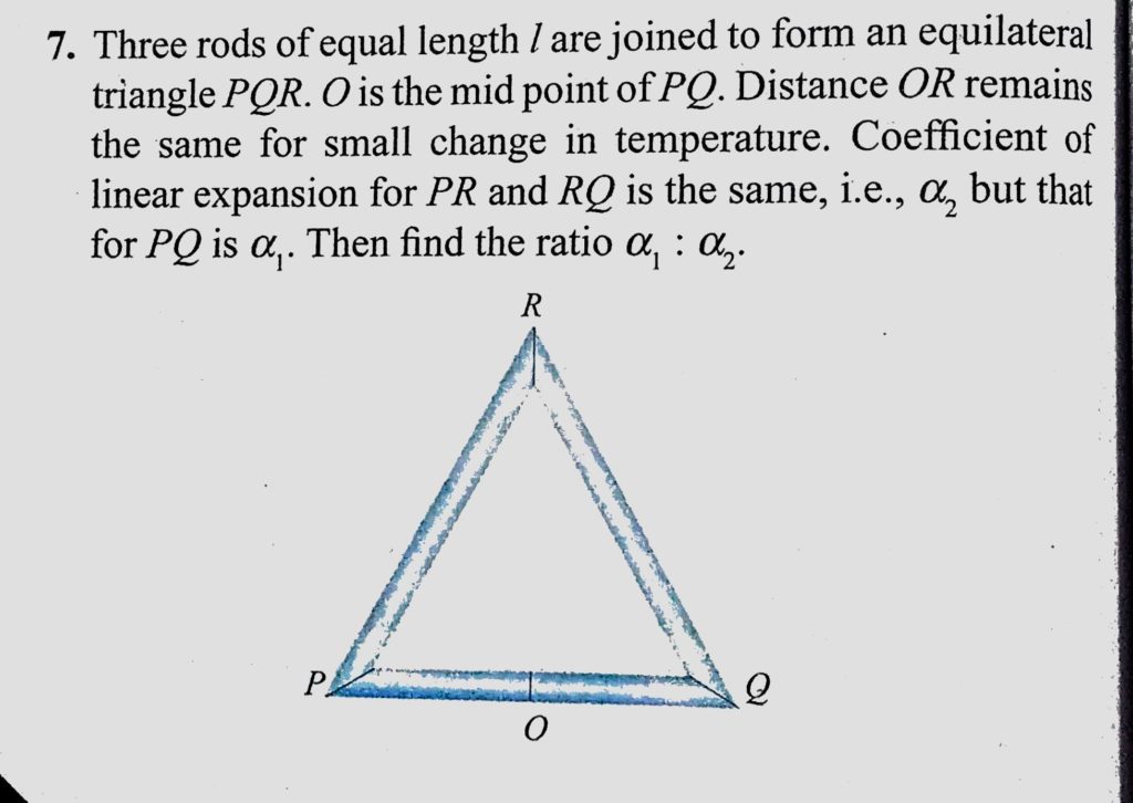 Three Rods Of Equal Length L Are Joined To Form An Equilateral Triangle Pqr O Is The Mid Point Of Pq Distance Or Remains The Same For Small Change In Temperature Coefficient