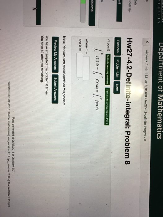 Solved Department Of Mathematics Webwork Mth 132 Us18 91 Chegg Com