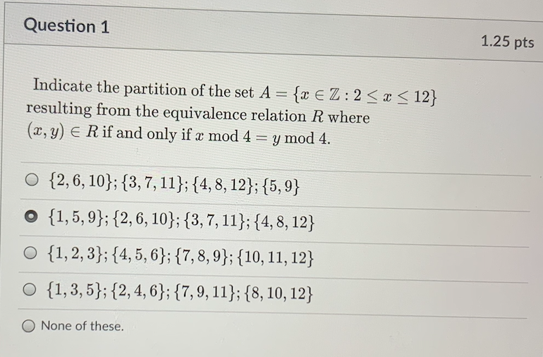 Solved Question 1 1 25 Pts Indicate The Partition Of The Chegg Com