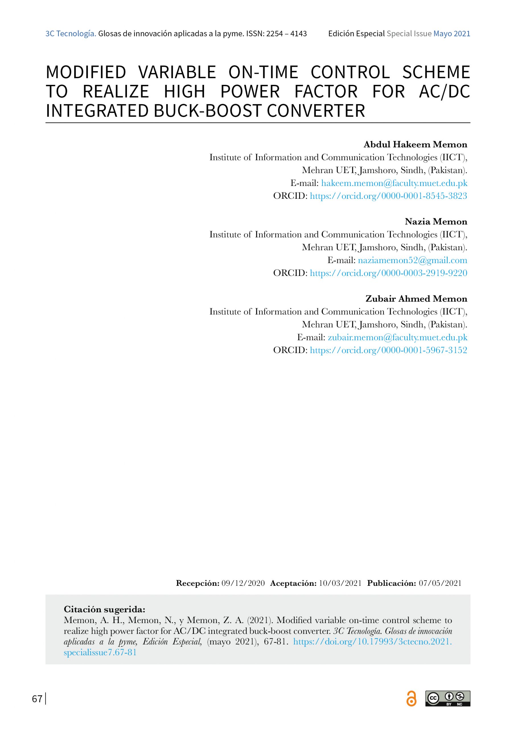 Modified Variable On Time Control Scheme To Realize High Power Factor For Ac Dc Integrated Buck Boost Converter 3ciencias