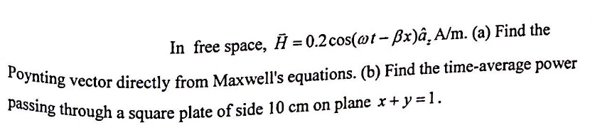 Solved In Free Space 0 2cos At Px A A M A Find The Chegg Com