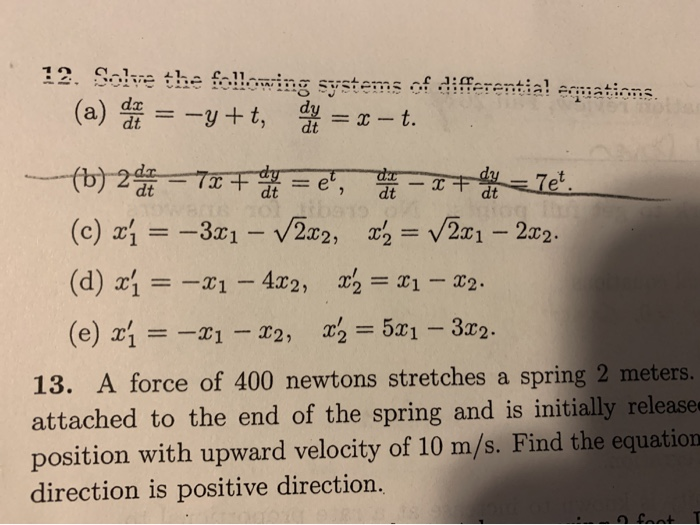 Solved 12 Solve The Following Systems Of Differential Eq Chegg Com