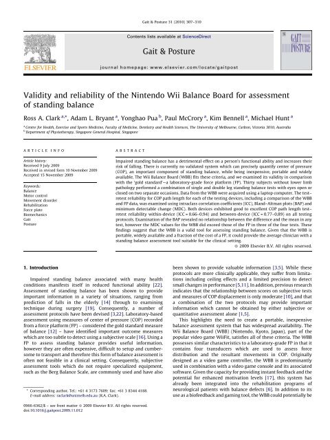 Pdf Posturography Using The Wii Balance Board Tm A Feasibility Study With Healthy Adults And Adults Post Stroke Jorge Latorre Grau Academia Edu