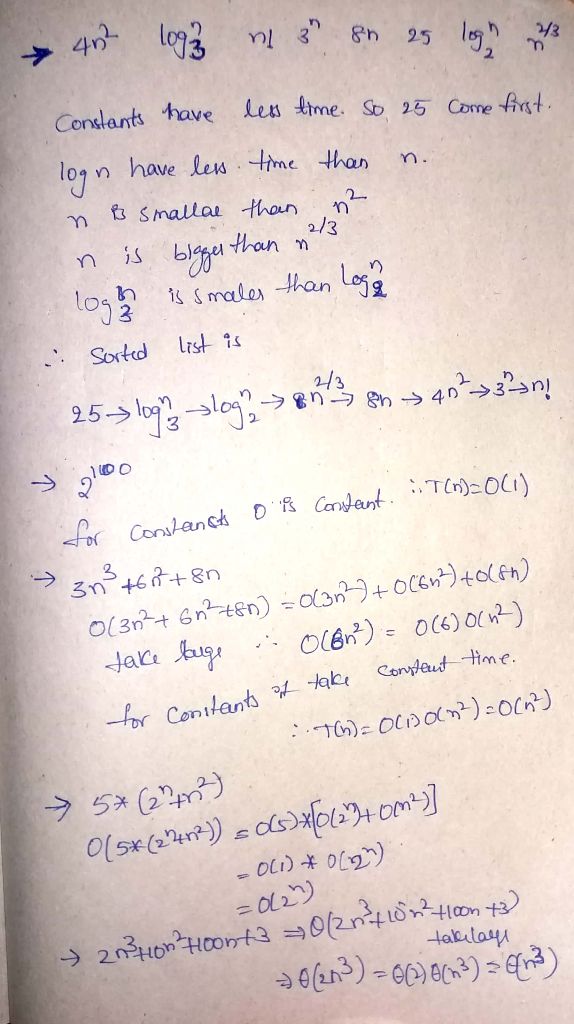 Solved Arrange Following Expressions Growth Slowest Fastest Log2n 4n2 Logan N 3 8n 25 Using Defin Q
