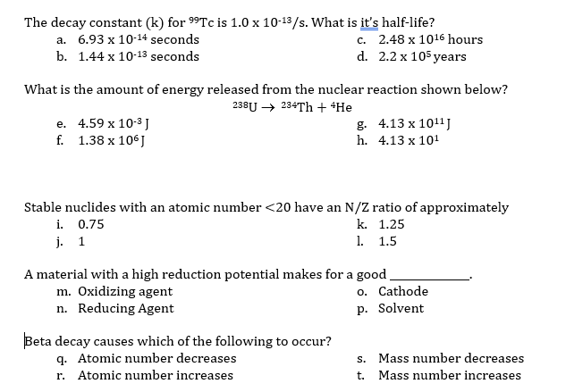 Solved The Decay Constant K For 99tc Is 1 0 X 10 13 S Chegg Com