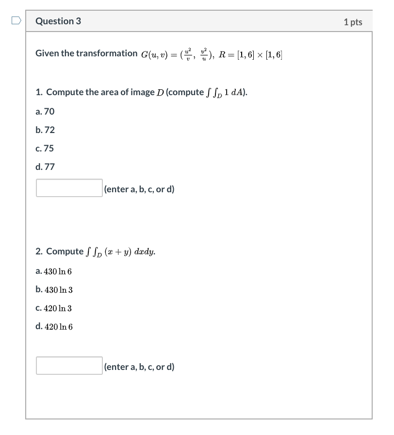 Solved Question 3 1 Pts Given The Transformation G U V Chegg Com