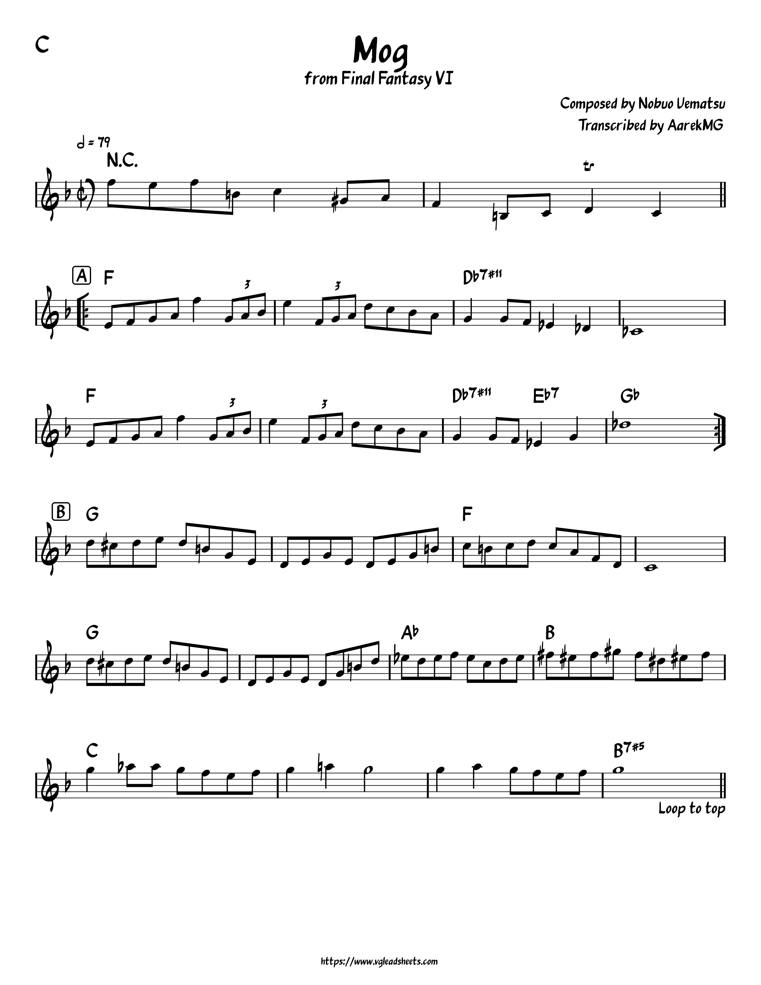 Final Fantasy Vi Mog Vgleadsheets Com Lead Sheets For Video Game Music