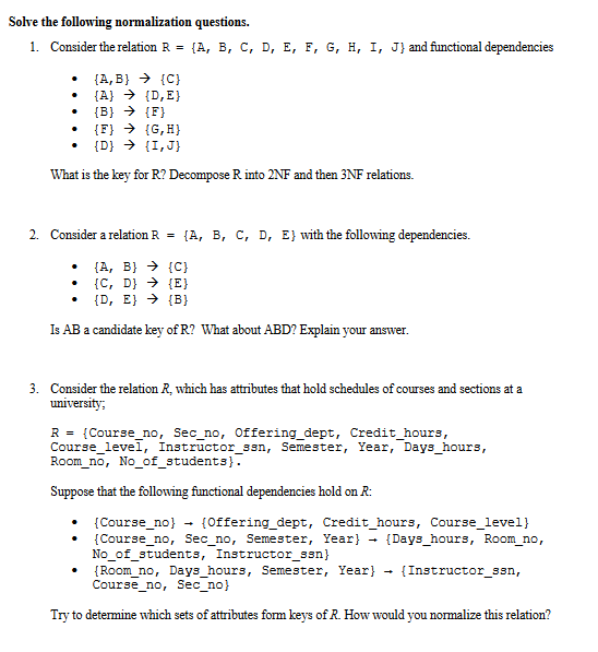 Solved Solve Following N Ormalization Questions 1 Consider Relation R B C D E F G H J Functional Q