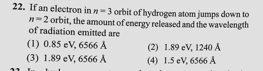 If An Electron In N 3 Orbit Of Hydrogen Atom Jumps Down To N 2 Orbit The Amount Of Energy Released And The Wavelength Of Radiation Emitted Are Sahay Lms
