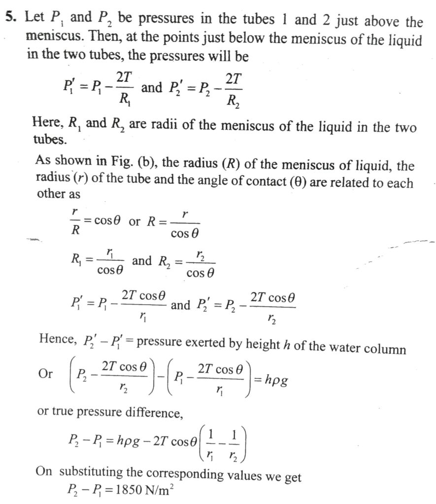 A Barometer Contains Two Uniform Capillries Of Radii 5 0 X 10 4 M And 1 0 X 10 3 M If The Height Of The Liquid In The Narrow Tube Is 0 2 M More