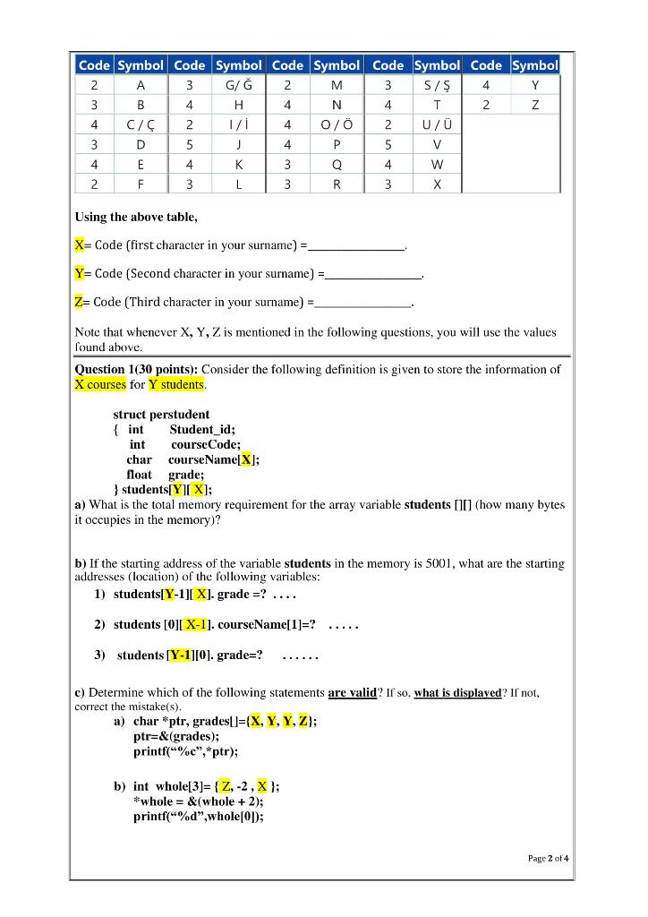 Solved Notes First Character In Your Surname Is M Seco Chegg Com