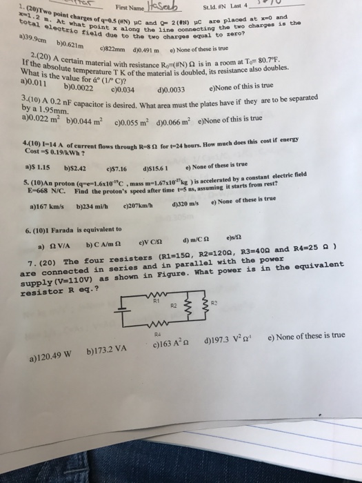 Solved Two Point Charges Of Q 0 5 N Mu C And Q 2 N Mu Chegg Com