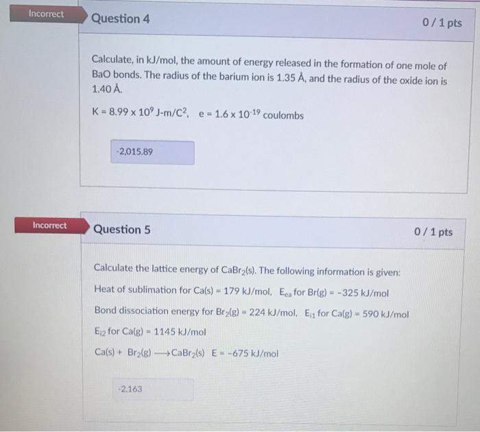 Solved Incorrect Question 4 0 1 Pts Calculate In Kj Mol Chegg Com