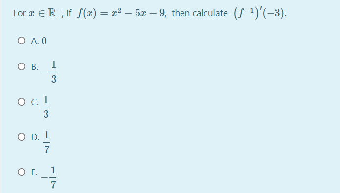If F X 9x 8 Which Of The Following Is The Inverse Of F X O A F X B F X X 8 9 O C F X Od
