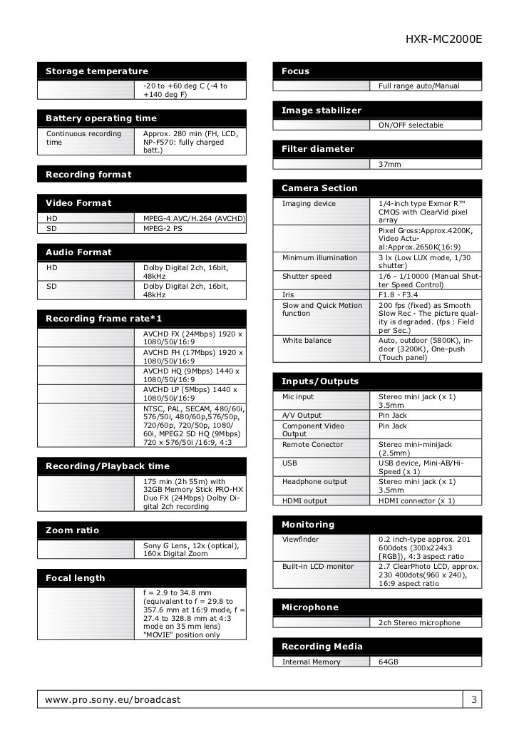 Sony Hxr Mc00e