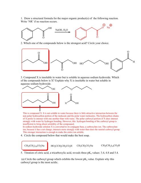 1 Draw A Structural Formula For The Major Organic Product S Of The