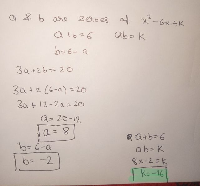 If A And B Are Zeroes Of X2 6 See How To Solve It At Qanda