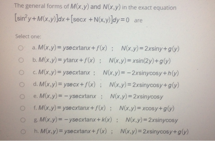 Solved The General Forms Of M X Y And N X Y In The Exac Chegg Com