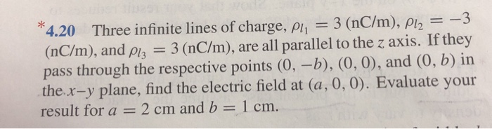Solved Problem 4 18 Three Infinite Lines Of Charge R11 3 Chegg Com