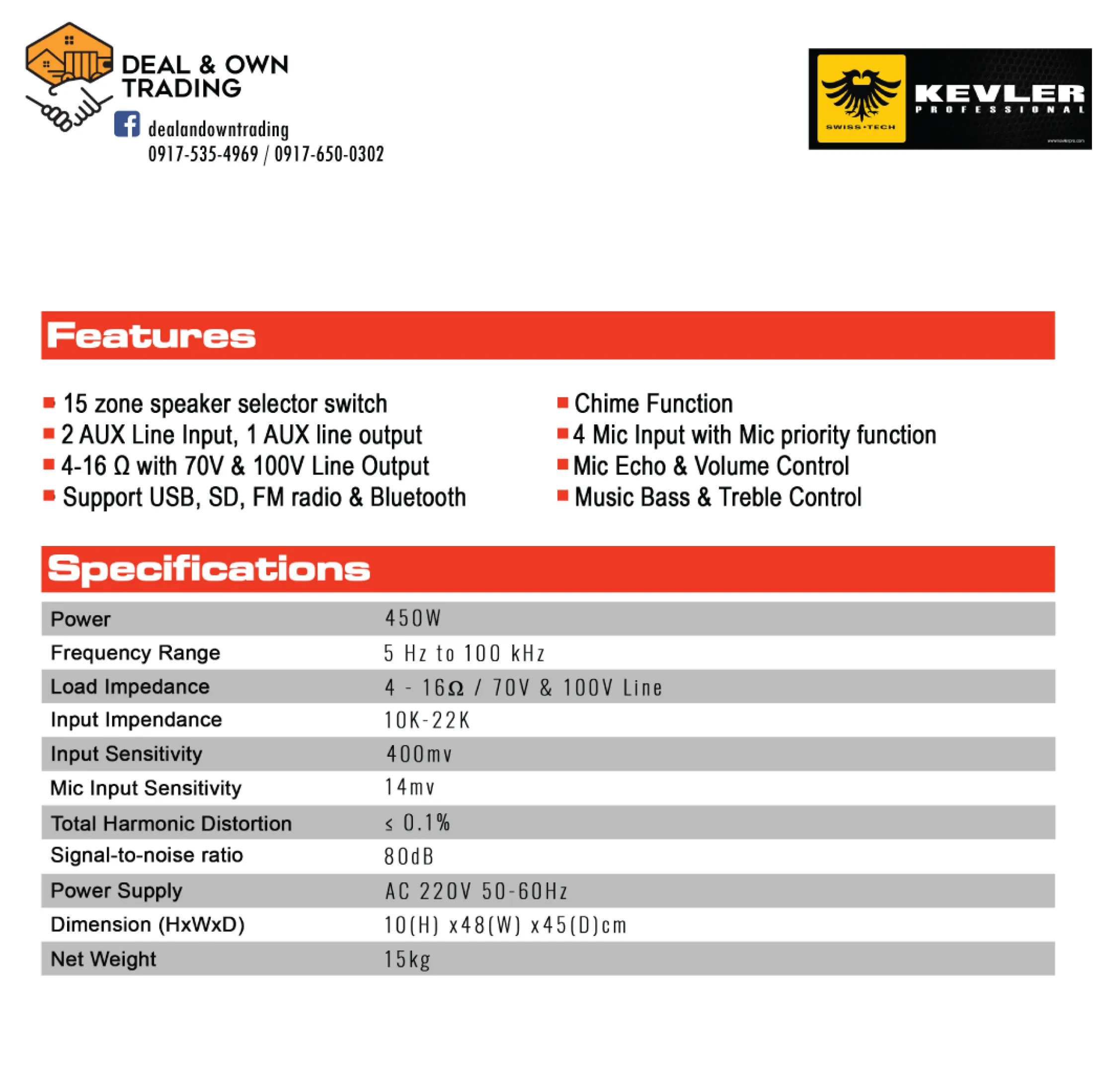 Kevler Bgm 500 450w Multi Zone Mixing Amplifier Lazada Ph
