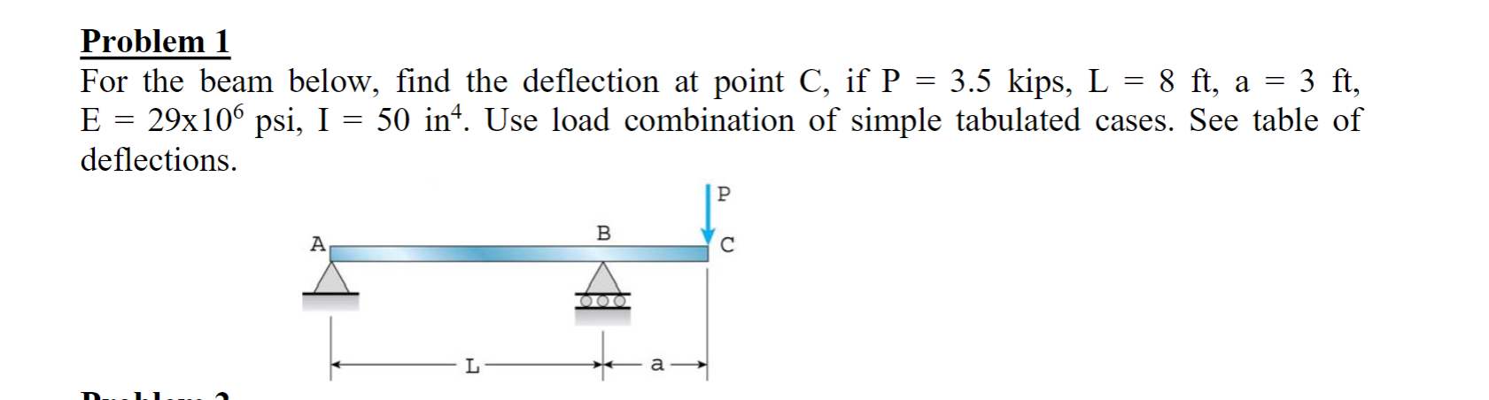 Solved Problem 1 For The Beam Below Find The Deflection Chegg Com