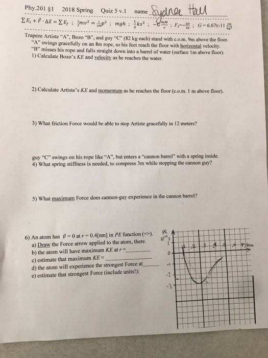 Solved Phy 1 1 18 Spring Quiz 5 V 1 Name Ea B Az Chegg Com