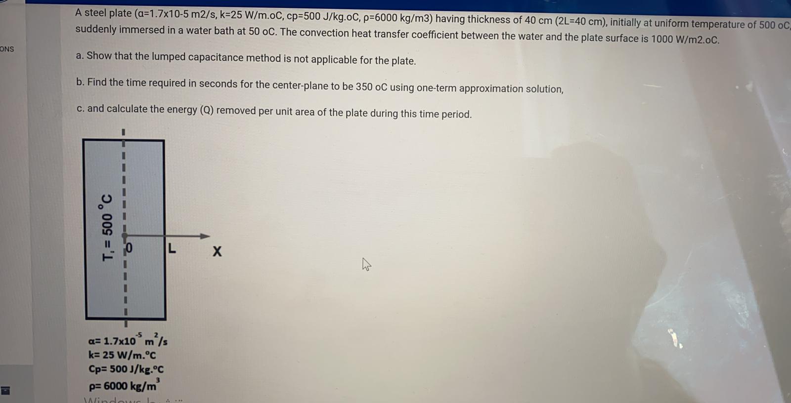 Solved A Steel Plate A 1 7x10 5 M2 S K 25 W M Oc Cp 50 Chegg Com