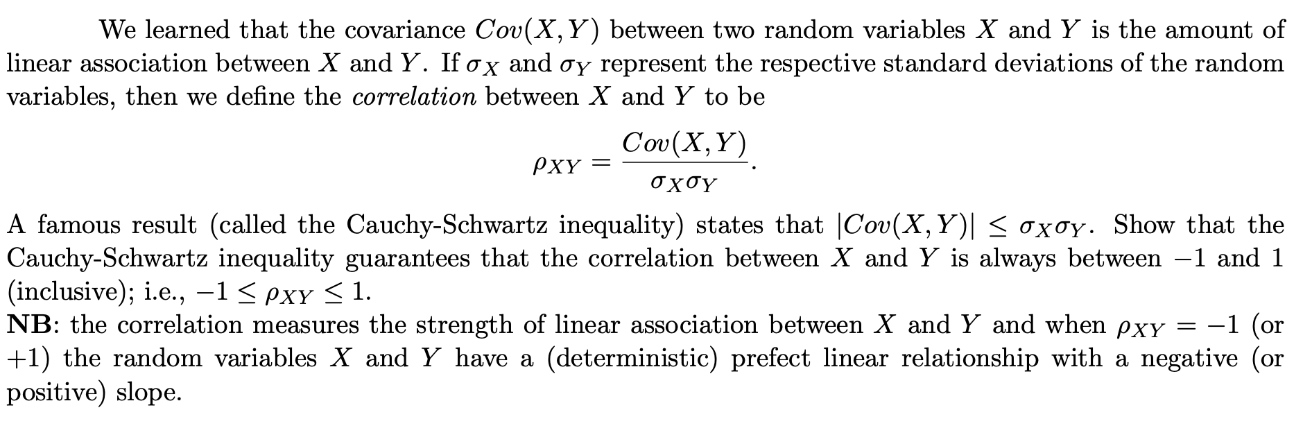 Solved We Learned That The Covariance Cov X Y Between T Chegg Com
