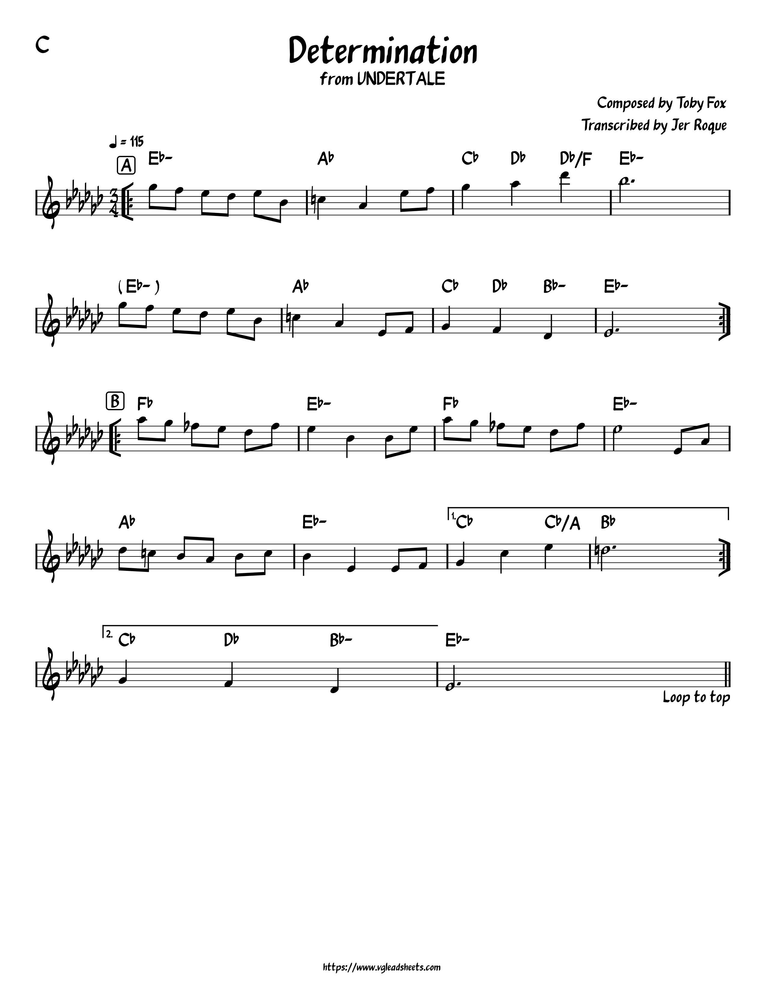 Undertale Determination Vgleadsheets Com Lead Sheets For Video Game Music