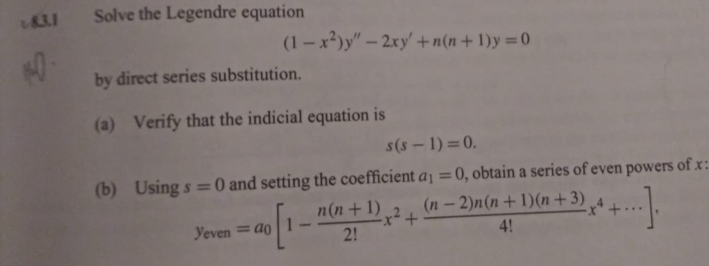Solved Solve The Legendre Equation 1 X2 Y 2xy N N 1d Chegg Com