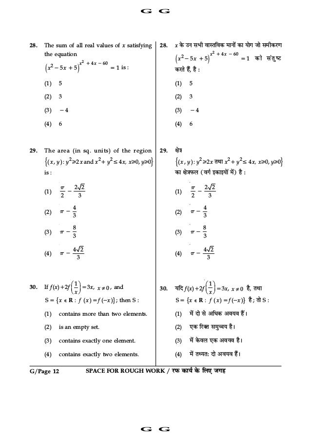 Iit Jee Mains 16 Offline Previous Question Paper Set G