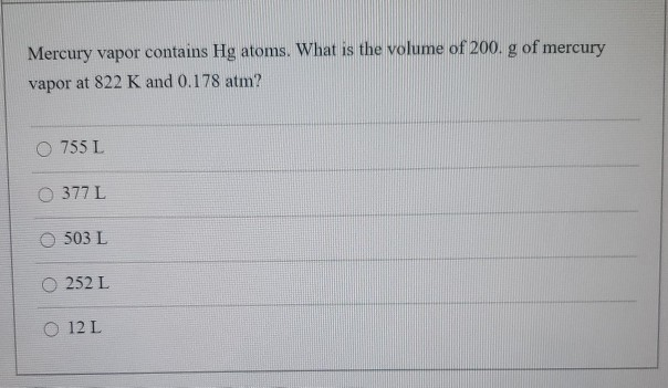 Solved Mercury Vapor Contains Hg Atoms What Is The Volum Chegg Com