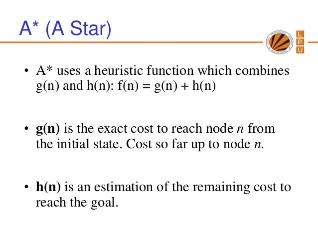 F(n) = g(n) h(n) (estimated cost of cheapest solution through n) • A reasonable strategy try node with the lowest g(n) h(n) value!. A* search Idea avoid expanding paths that are already expensive Evaluation function f(n) = g(n) h(n) g(n) = cost so far to reach n h(n) = estimated cost from n to goal f(n) = estimated total cost of path through n to goal Best First search has f(n)=h(n) Uniform Cost search has f(n)=g(n). Listen to LIFEMORPHING on Spotify Biological Events · Album · 1995 · 6 songs.