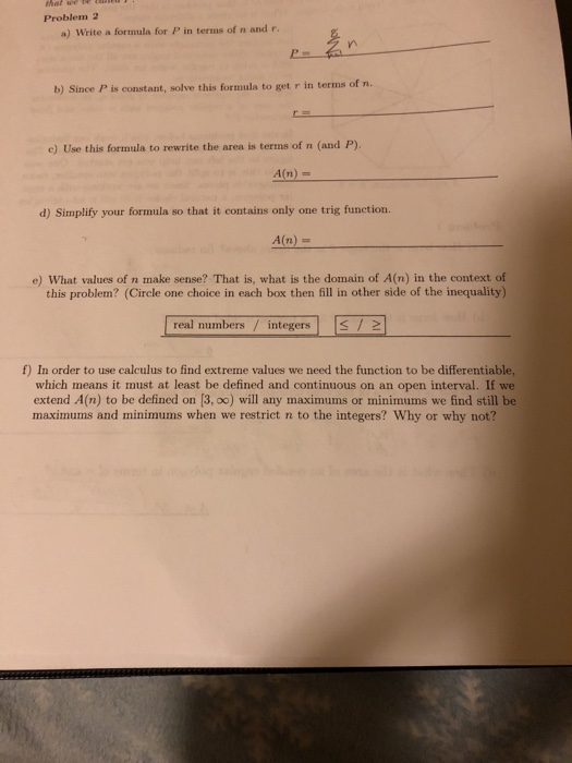 Problem 3 A Write A Formula For P In Terms Of N A Chegg Com