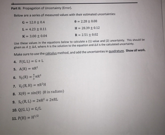 Solved Part Ii Propagation Of Uncertainty Error Below Chegg Com