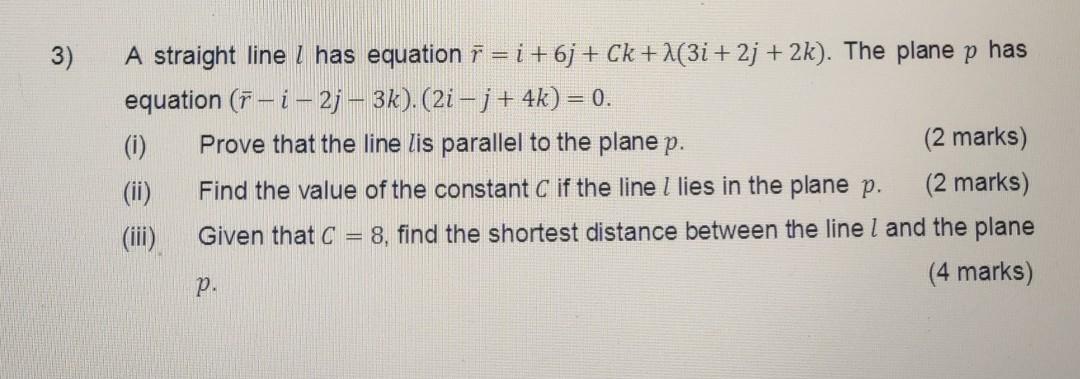 Solved 3 A Straight Line L Has Equation R I 6j Ck 1 Chegg Com