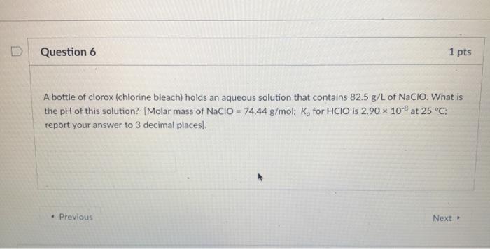 Solved Question 6 1 Pts A Bottle Of Clorox Chlorine Blea Chegg Com